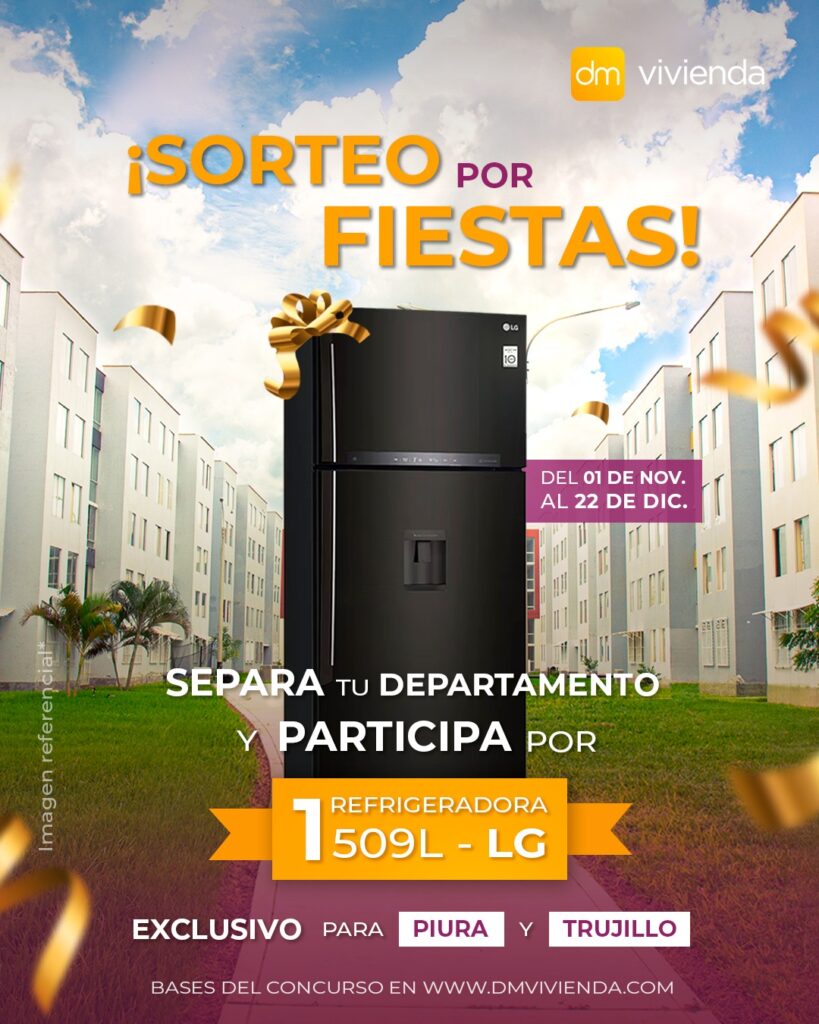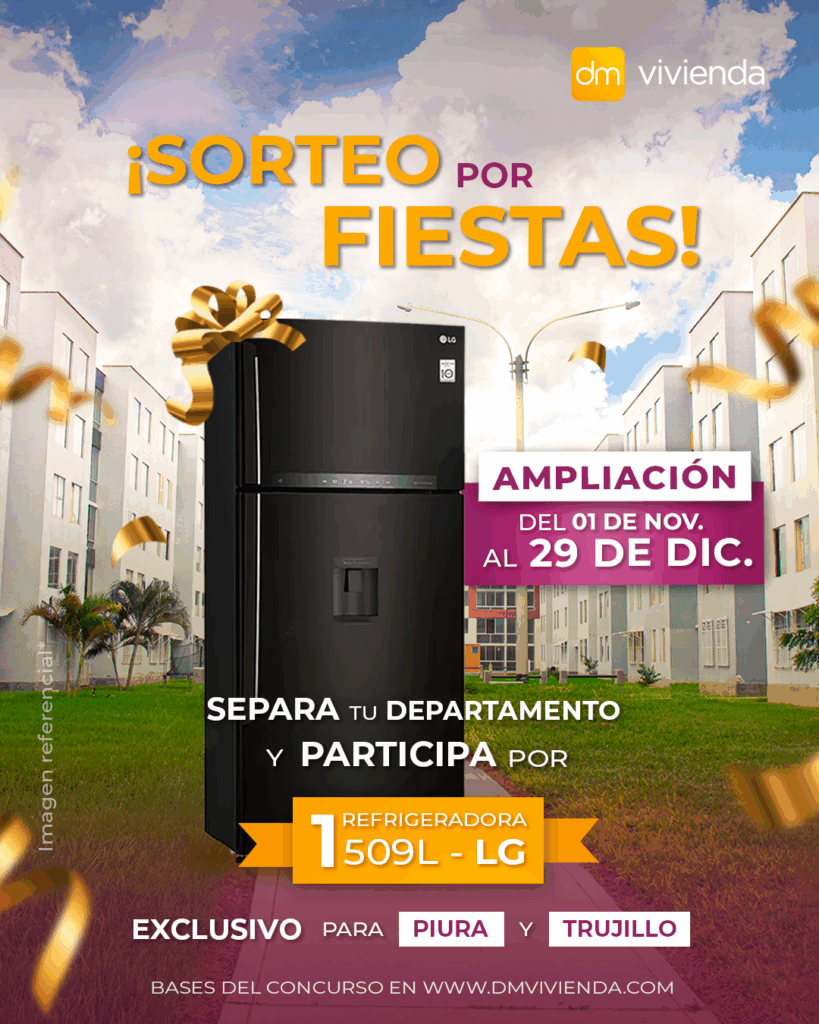 - El sorteo se llevará a cabo mediante una transmisión en vivo a través de la página oficial de Facebook @dmviviendaperu, el jueves 23 de diciembre de 2025 a las 04:00 p.m. La selección del ganador será realizada de forma aleatoria mediante la plataforma digital https://app-sorteos.com/es/apps/sorteados, en presencia del público virtual y bajo criterios de transparencia.